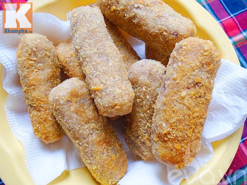 – 100g bột năng hoặc bột ngô, 150g đường, 2 quả trứng gà, bột chiên xù, dầu chiên